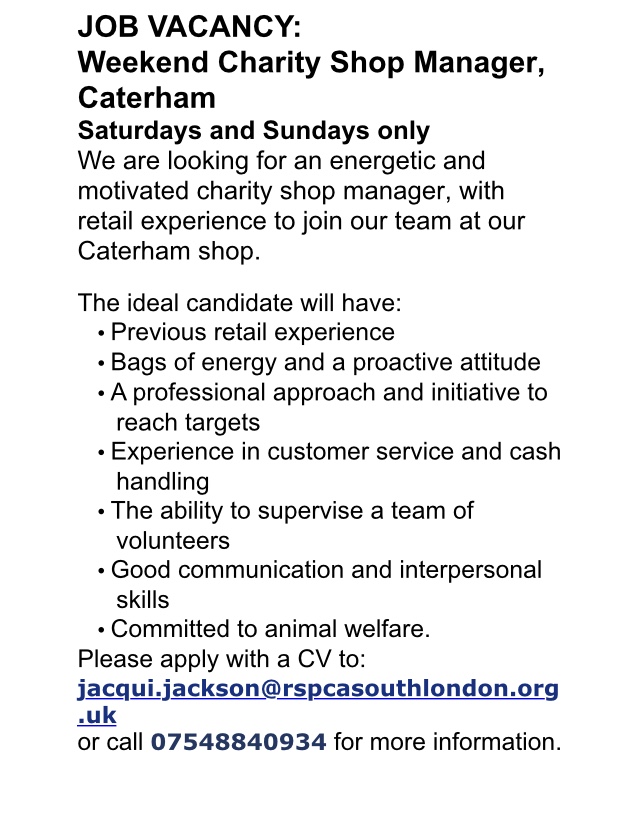 We are looking for a shop manager to work weekends in our bustling Caterham store.