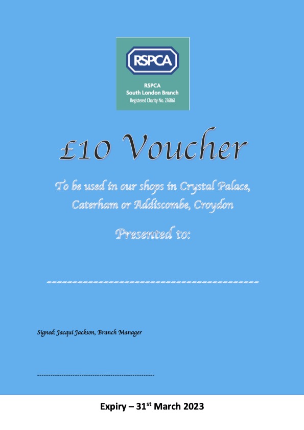 RSPCA shop vouchers – Rania L, Louise G, Jean B