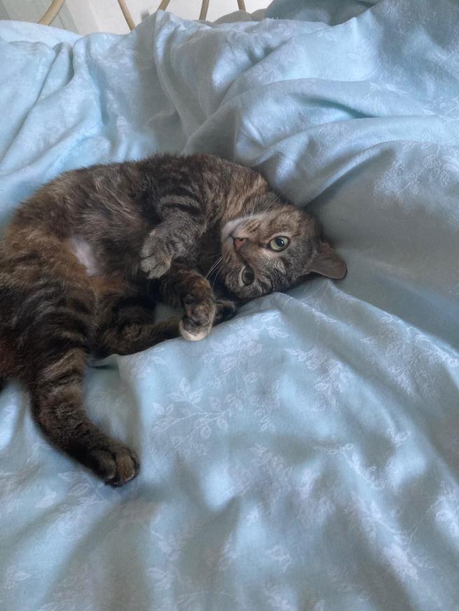 Zendaya has a very special personality that we sometimes see in strays from unknown origins. We are looking for someone to adopt her. She very much enjoys company and will follow you room to room, rub up against your legs, and sometimes sleep on your bed with you. However she appreciates being petted on her own terms and will let you know if she’s had enough or doesn’t want to be touched.
