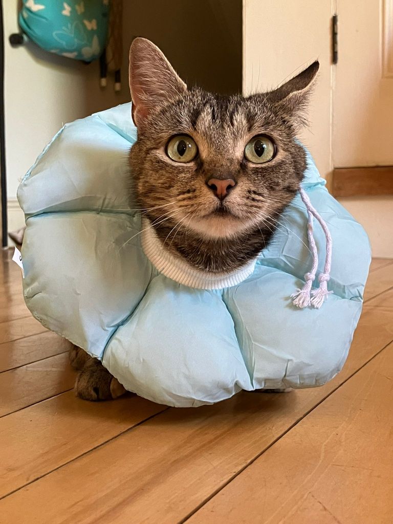 Although the bone was healed, the broken parts weren’t aligned properly which has made her leg 1cm shorter than the other. The area was also likely to be more fragile, so the vets recommended that Zendaya be re-homed as an indoor cat.